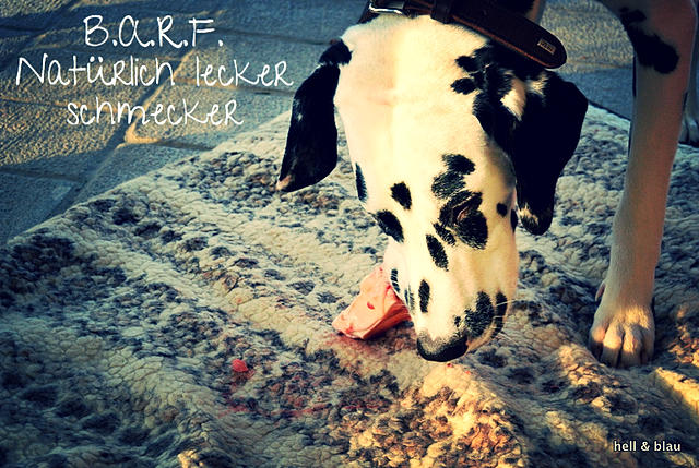 Nachdem also die Entscheidung: Dalmatinerwelpe von einem Züchter+Rüde feststand, machten wir uns also auf die Suche nach einem Züchter, der seine Welpen von Anfang an ans Barfen heran führt. Denn wir wollten dem Kleinen eine Umstellung ersparen und ihn direkt an die Rohfütterung heran führen.